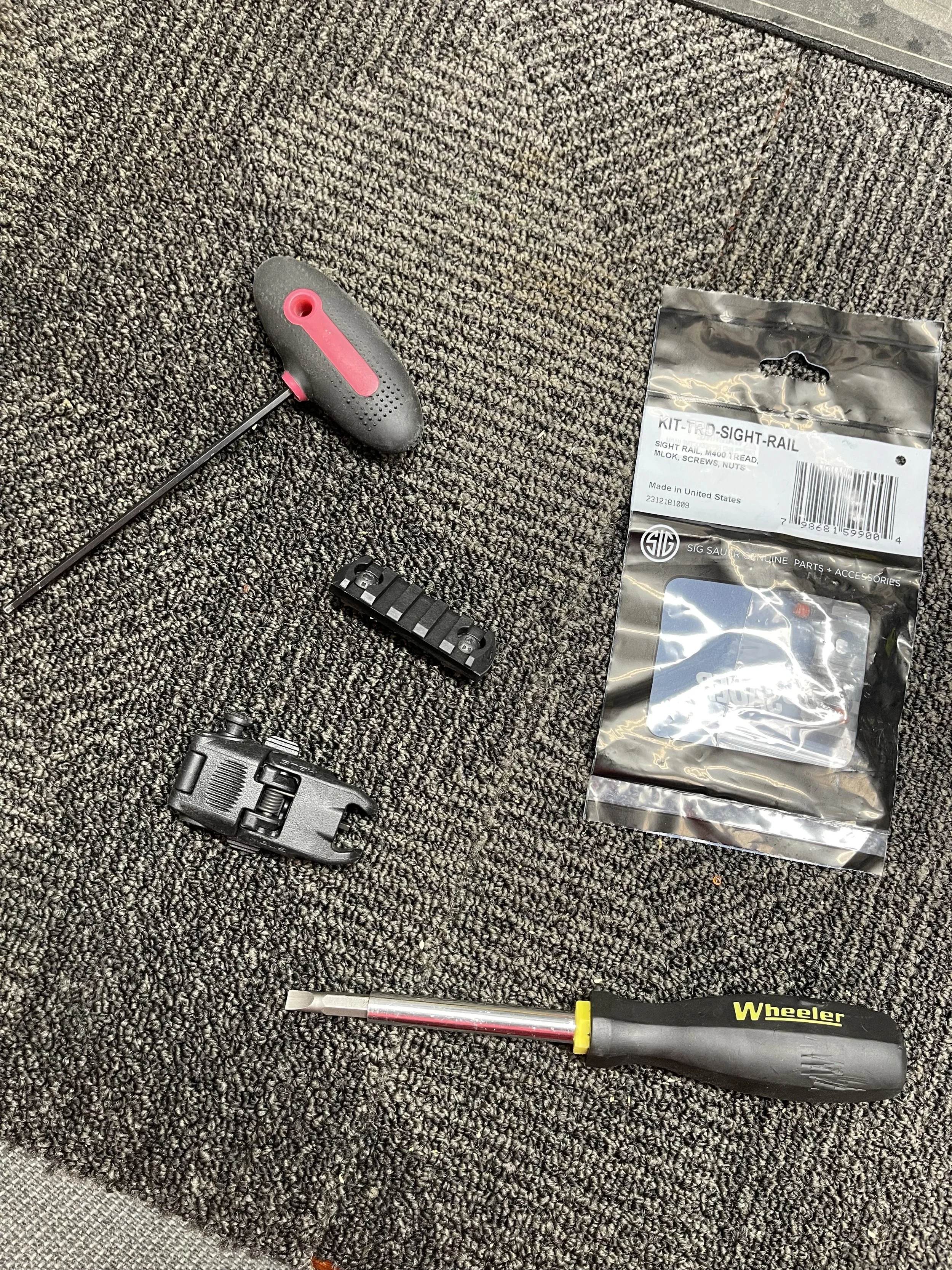 Fortunately, Sig Sauer has a fix for this. They make a proprietary rail designed specifically for the Tread M400 rifle. The rail is much thinner and sits lower than a standard rail section. A simple swap of the rails gave me the clearance needed to adjust the sights appropriately and get the rifle zeroed.